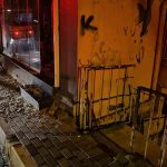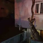Sarıyer’de gece saatlerinde 2 katlı binanın üst katında yer alanda dükkan zemininden çatladı. Çatlama sonrası üst katı kayan bina, arkasında bulunan gecekondunun çatısına yaslandı.