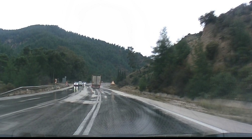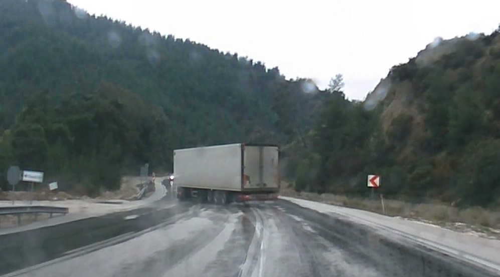 Olay, geçtiğimiz günlerde Burdur’un Ağlasun ilçesine bağlı Antalya–Isparta kara yolunun Isparta istikameti Aşağı Yumrutaş mevkiinde meydana geldi. Edinilen bilgilere göre, yağmurun etkisiyle kayganlaşan yolda kontrolden çıkan bir tır ve dorsesi bir anda savrularak yolu kapladı. Tır sürücüsünün yaptığı manevra sayesinde araç yeniden kontrol altına alınırken, yaşanan tehlikeli anlar tırın arkasından gelen bir otomobilin araç kamerasına saniye saniye yansıdı. Görüntülerde, çift şeritli yolda karşı yönden gelen araçların da bulunduğu ve muhtemel bir facianın kıl payı atlatıldığı görüldü. Olayda herhangi bir yaralanma yaşanmazken, yaşananlar sürücüleri korkuttu.