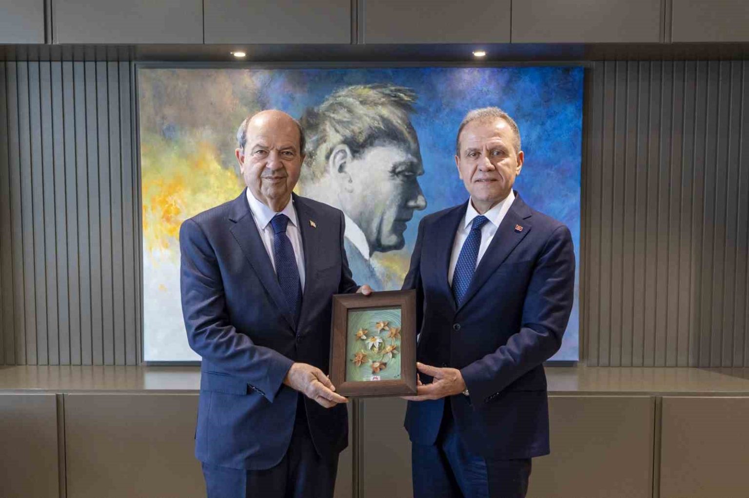 Bir dizi temaslarda bulunmak üzere Mersin’e gelen Kuzey Kıbrıs Türk Cumhuriyeti’nin (KKTC) 5. Cumhurbaşkanı Ersin Tatar ve beraberindeki heyet, Türkiye Belediyeler Birliği (TBB) Başkan Vekili ve Mersin Büyükşehir Belediye Başkanı Vahap Seçer’i ziyaret etti.