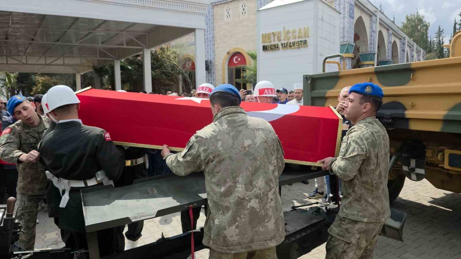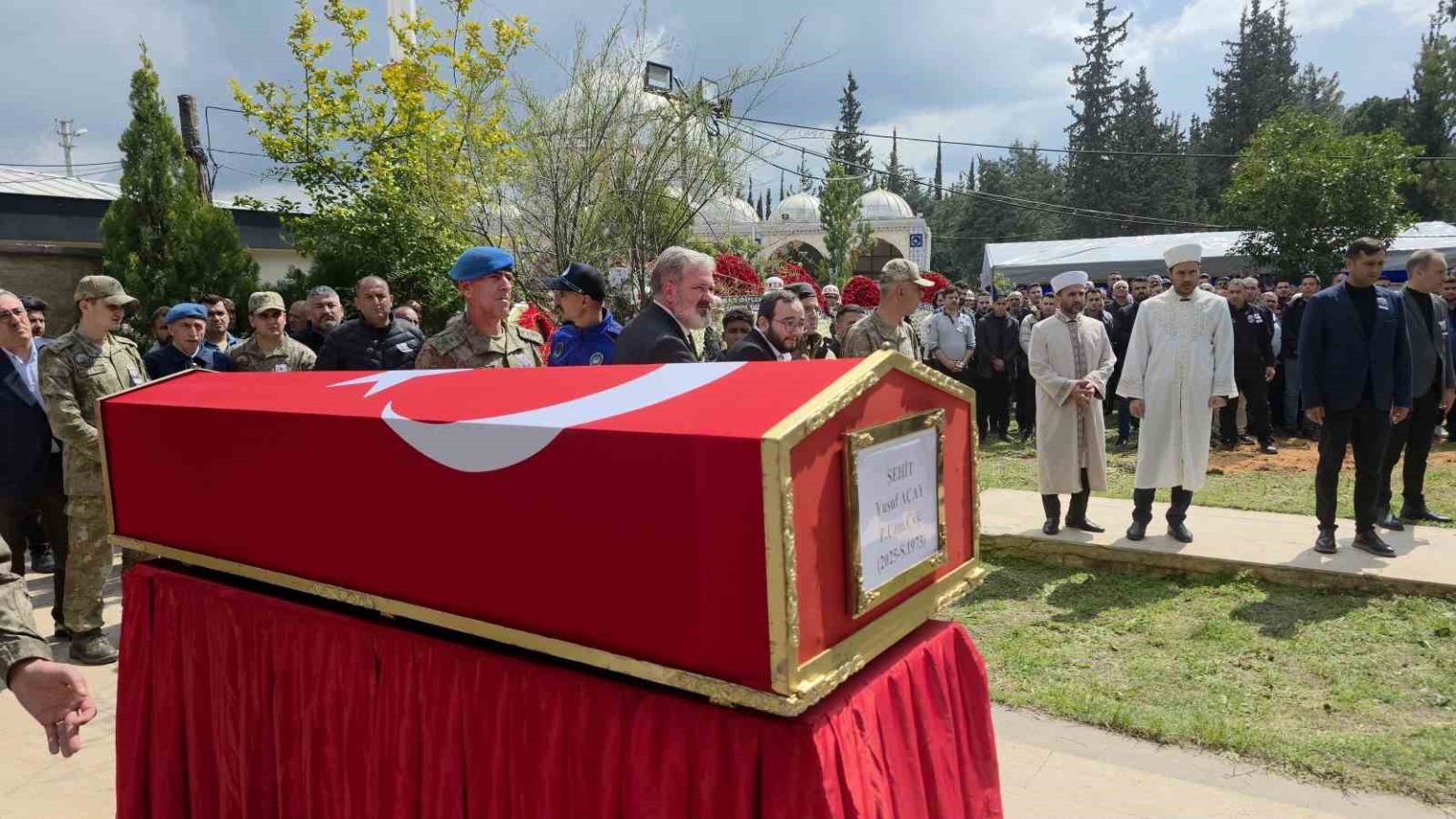 Ağrı’da yaşanan askeri araç kazası sonucu şehit olan 25 yaşındaki Piyade Uzman Çavuş Yusuf Açay, memleketi Hatay’da kılınan cenaze namazının ardından son yolculuğuna uğurlandı. Cenaze namazında ve askeri törende ise şehidin annesi ve kız kardeşleri gözyaşlarına hakim olamadılar.