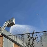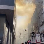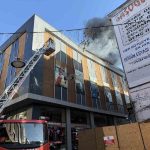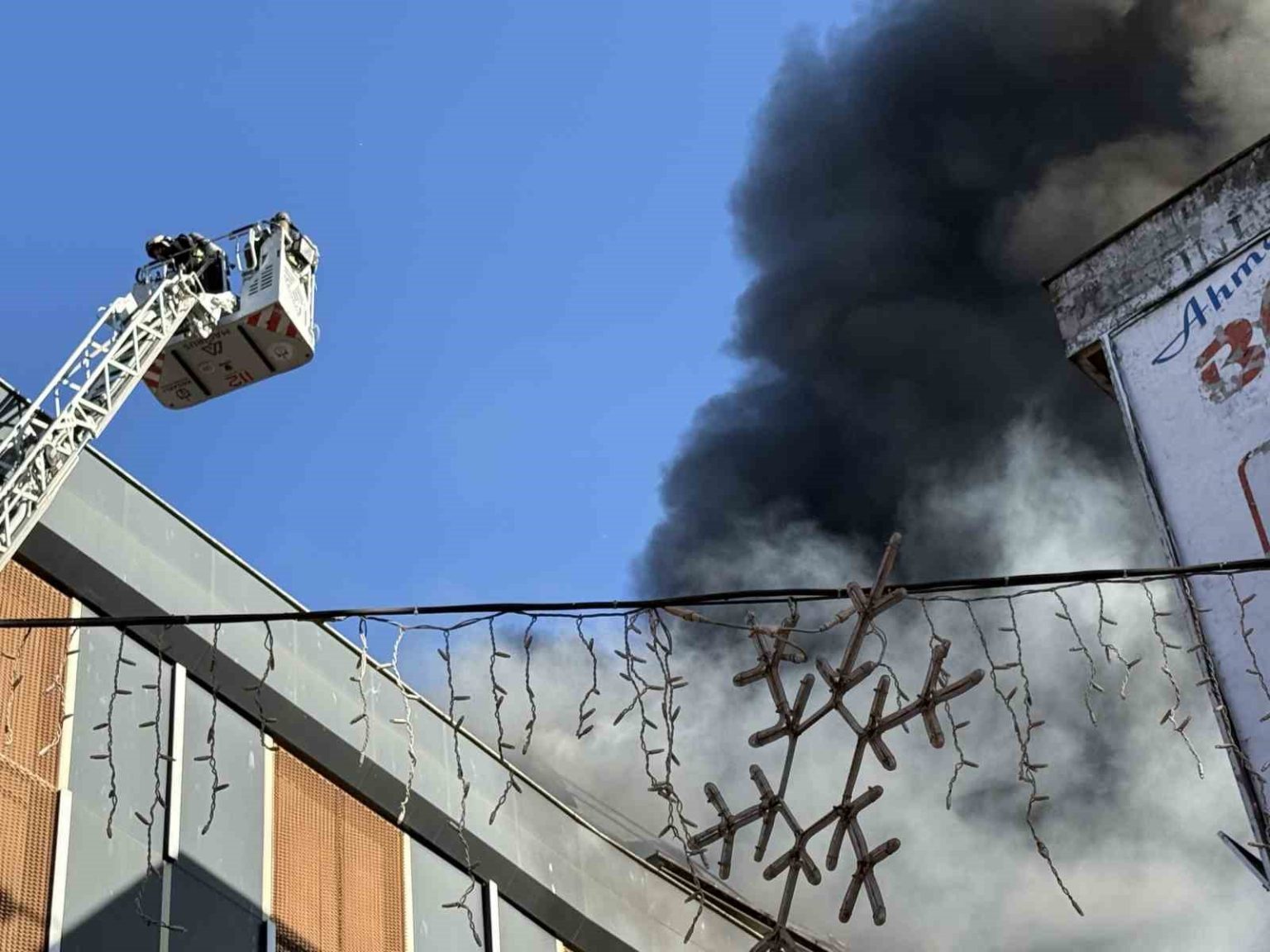 İş merkezinde hasar oluşurken, polis ve itfaiye ekipleri yangının çıkış nedenini araştırıyor.