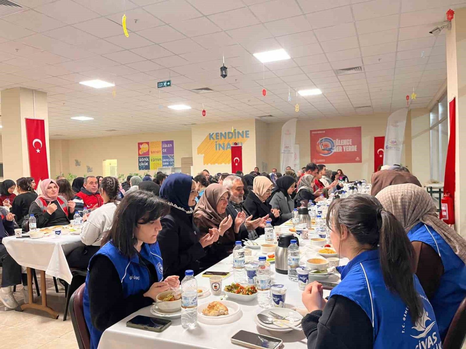 Sivas Şehit Aileleri ve Gazileri Sosyal Yardımlaşma ve Dayanışma Derneği ile Farabi Gençlik Merkezi iş birliğinde düzenlenen program, Binali Yıldırım Yurt Kampüsü içerisinde bulunan Aşık Ruhsati Kültür Merkezi’nde gerçekleştirildi. Programda, ailelerinden uzakta eğitim hayatını sürdüren kız öğrenciler ile evlatlarını vatan uğruna toprağa vermiş şehit aileleri aynı iftar sofrasında buluştu. Ramazan ayının manevi atmosferinde gerçekleşen programda birlik, dayanışma ve vefa duyguları ön plana çıktı. İftar programı boyunca öğrenciler ile şehit anneleri arasında kurulan samimi sohbetler ve paylaşımlar duygu dolu anların yaşanmasına neden oldu. Aynı sofrada buluşan katılımcılar, Ramazan ayının bereketini ve paylaşmanın huzurunu birlikte yaşadı.