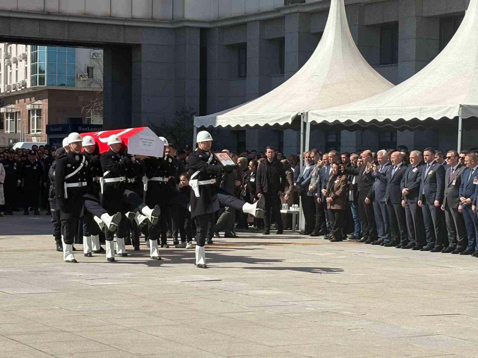 Başakşehir Kuzey Marmara Otoyolu’nda meydana gelen trafik kazasında ağır yaralanan ve kaldırıldığı hastanede dün şehit olan polis memuru Seçkin Yalçın için İstanbul Emniyet Müdürlüğü’nde tören düzenlendi. Güçlükle ayakta duran acılı baba Abdülkadir Yalçın, tören mangasında omuzlarda taşınan şehidin naaşına dokunarak yürüdü.
