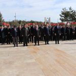 Törene Vali Şimşek, Garnizon Komutanı Zeynel Abidin Alptekin, Belediye Başkanı Adem Uzun, il protokolü, gaziler ve şehit yakınları katıldı.