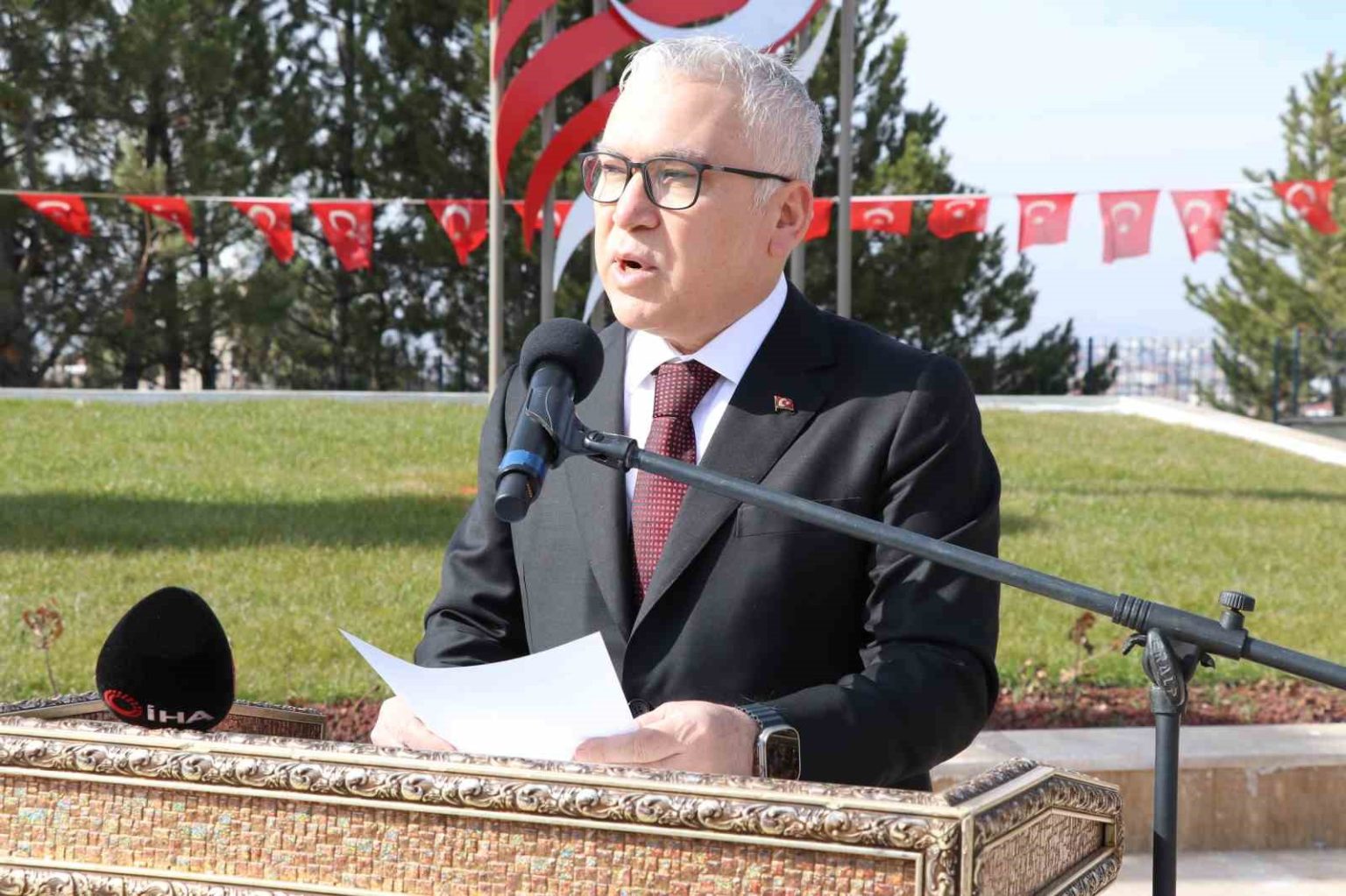 Törene Vali Şimşek, Garnizon Komutanı Zeynel Abidin Alptekin, Belediye Başkanı Adem Uzun, il protokolü, gaziler ve şehit yakınları katıldı.