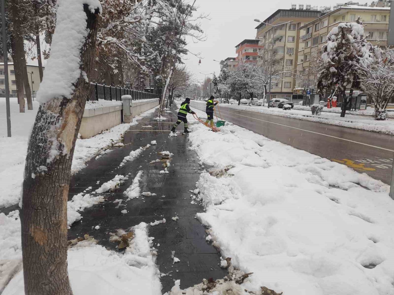 Şehitkamil Belediyesi Fen İşleri, Temizlik İşleri ile Park ve Bahçeler Müdürlüğü ekipleri, kar yağışının başladığı ilk andan itibaren adeta mahallelere konuşlandı. Ana arterler, cadde ve sokaklarda kar küreme ve tuzlama çalışmaları aralıksız sürdürülürken; hastane, kamu kurumları, okul ve yoğun kullanılan alanlarda öncelikli müdahaleler gerçekleştirildi. Ekipler, olası buzlanma ve ulaşım aksaklıklarına karşı sürekli teyakkuz halinde görev yaptı.