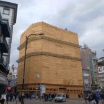 Trabzon kent merkezindeki en işlek noktalarından Uzunsokak’ın girişindeki bir iş merkezinde başlatılan tadilat çalışması nedeniyle tamamen kereste ile kaplanması ilginç bir görüntü oluşturdu. Çalışmalar kapsamında binanın cephesi, güvenlik amacıyla milyonlarca lira değerinde keresteyle kapatılırken, bina görüntüsü ile adeta bir hediye paketini andırdı.