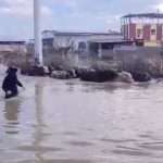Selde mahsur kalan inekler boğulmaktan kurtarıldı