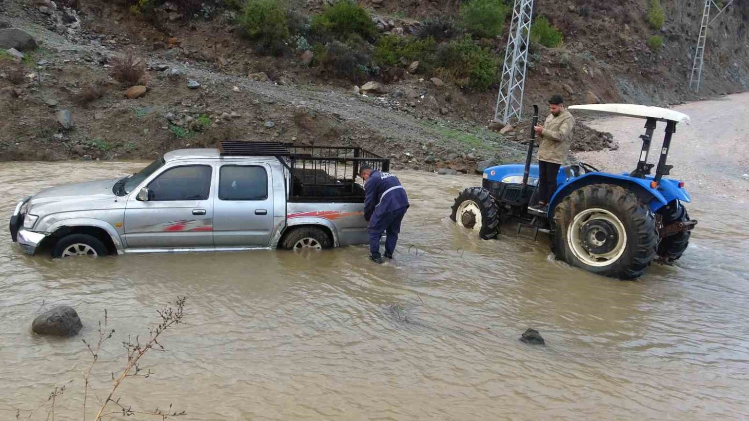 Etkili olan selle birlikte yolun suyla kaplandığını ifade ederek, ” Gördüğünüz bu yol yağmurdan sonra böyle oldu. Yağmur yüzünden kayalar devrildi. Ben de ahırı kontrol etmeye geldim. Aracım mahsur kaldı. Sağ olsun traktör beni kurtardı. Geçen sene öyle değildi bu sene çok yağmur yağmasıyla birlikte bu aralar böyle oldu” dedi.