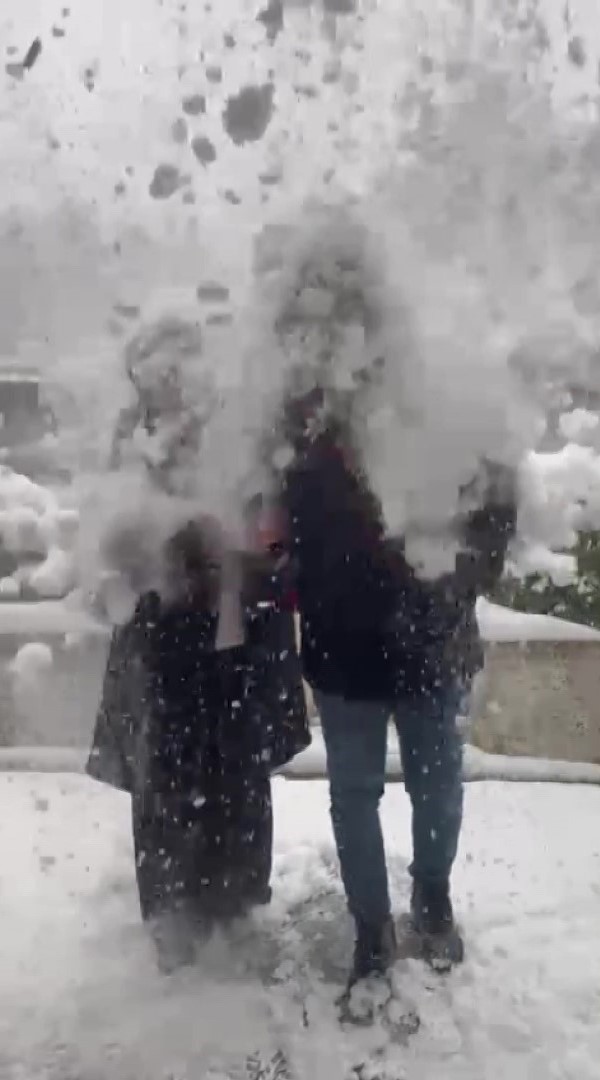 Eşi Numan ile birlikte başlarına gelenleri sosyal medyada paylaşan Gözde Öztürk, “Hatıra olmasını istemiştik. Az miktarda kar döküleceğini bekliyorduk. Ama yoğun kar kütlesi bir anda kafamdan aşağı döküldü. Birden kardan kadın oldum. Kar banyosu yapmış gibi oldum” diye konuştu.