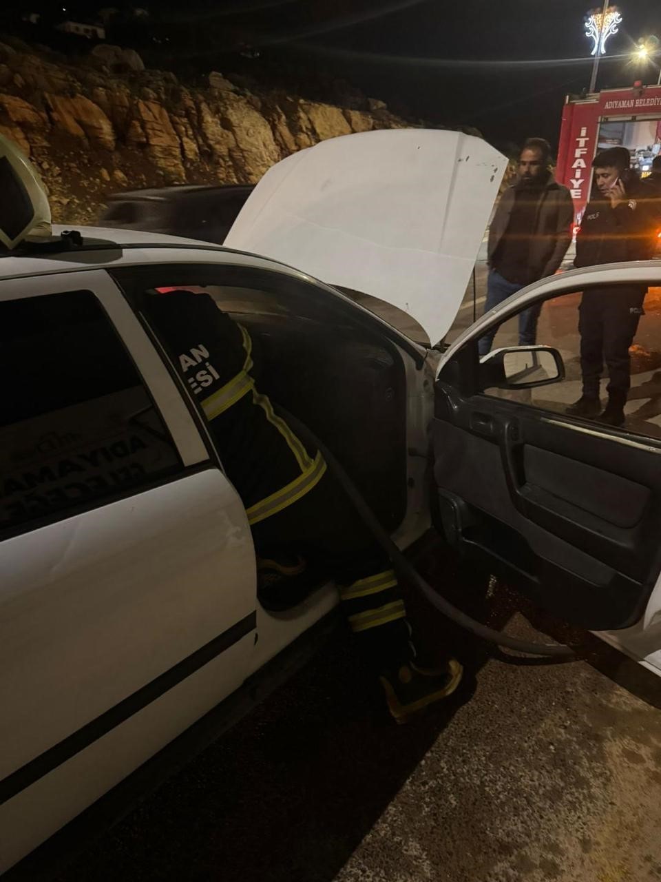 Adıyaman’da seyir halindeki bir otomobil alev alarak yandı.
