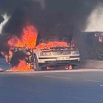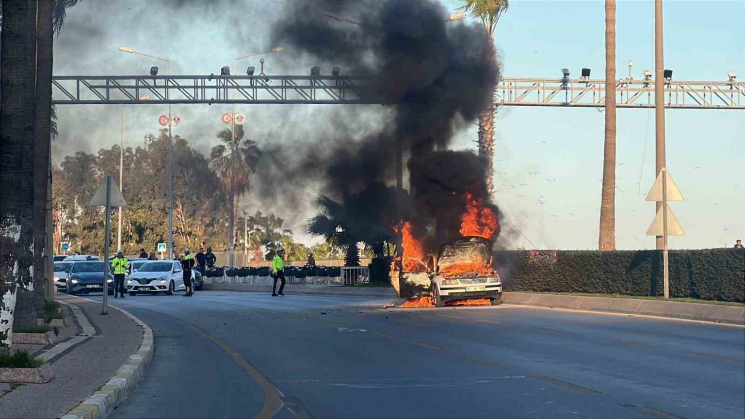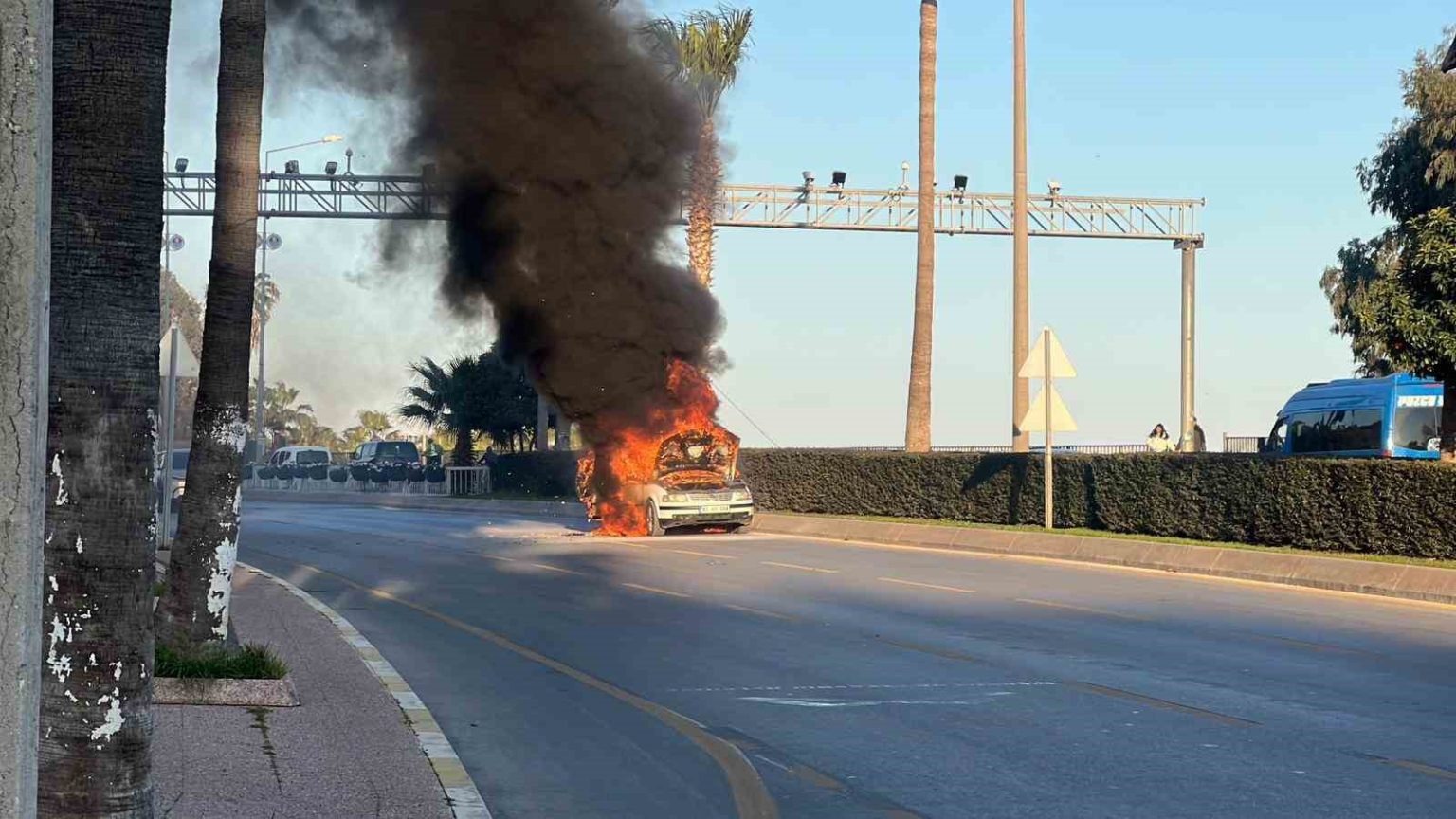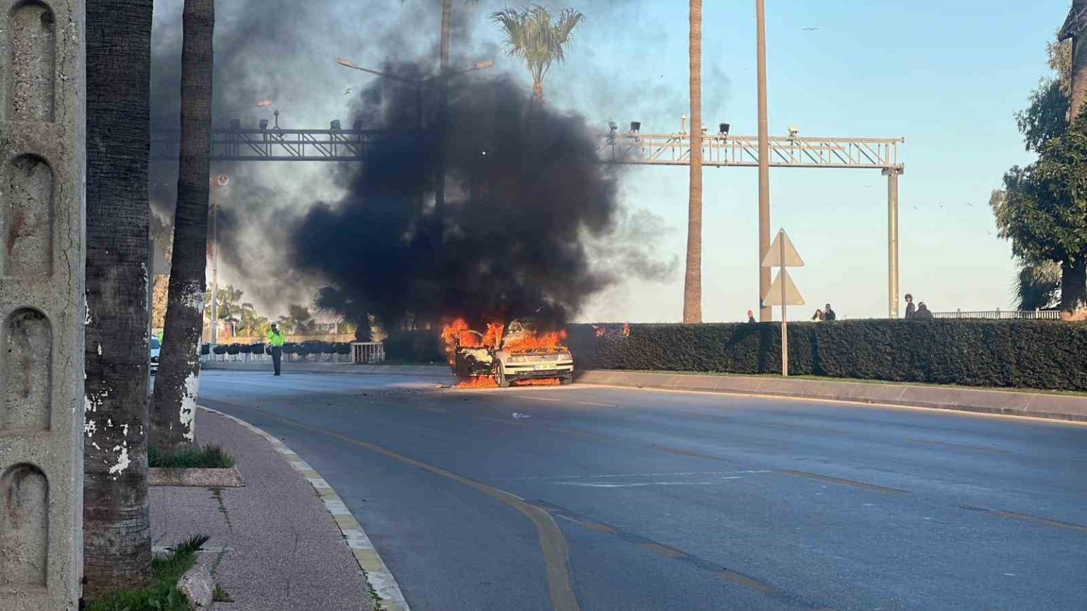 Mersin’de seyir halindeki otomobil alev alev yandı, araçta bulunan 2 kişi son anda kurtuldu.