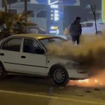 Adıyaman’da seyir halinde olan bir otomobil alev alev yandı.
