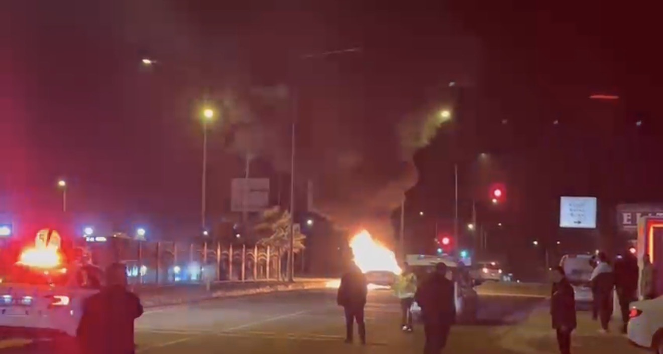 Seyir halindeki otomobil alev topuna döndü