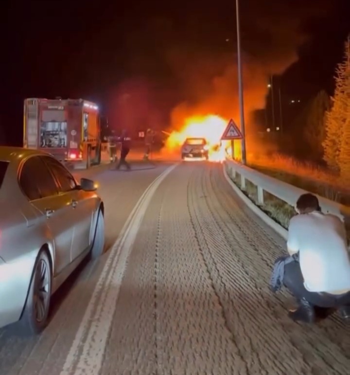 Seyir halindeki otomobil alev topuna döndü: Aracının yanışını çaresizce izledi