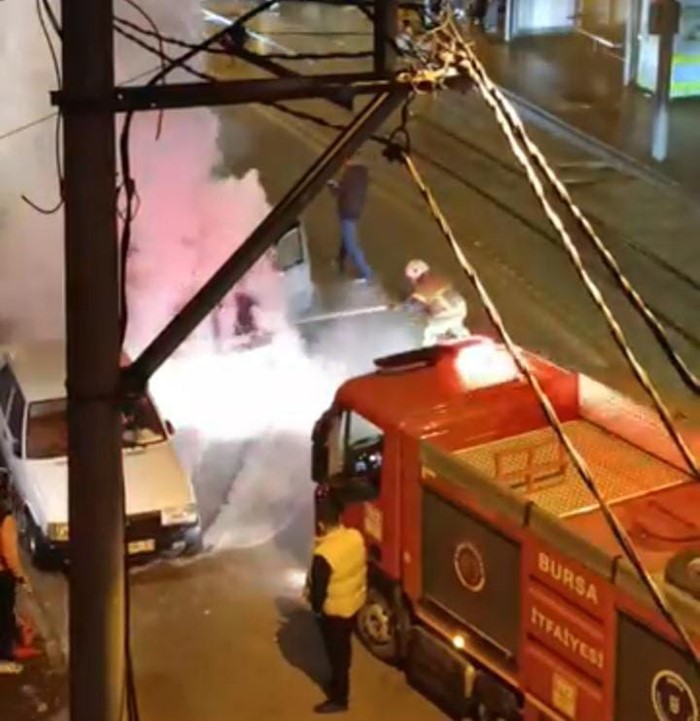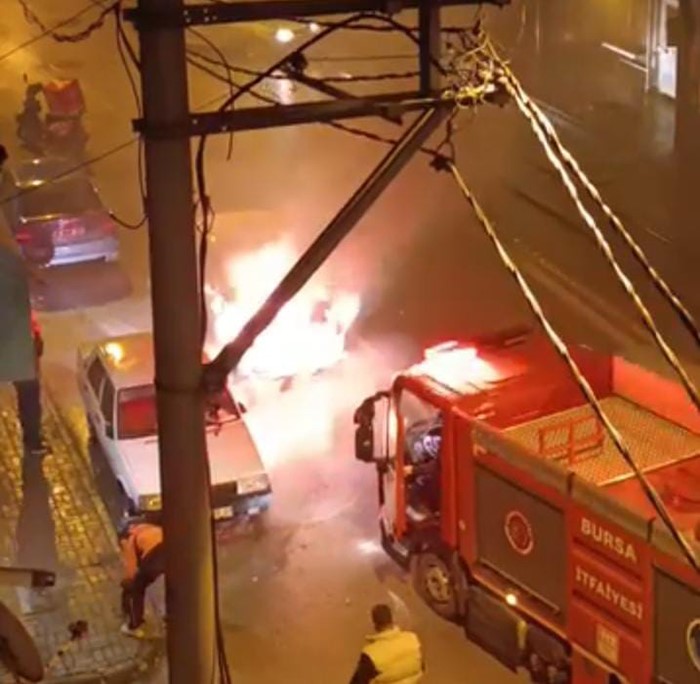 Bursa’da akşam saatlerinde seyir halindeki bir otomobilde önce dumanlar çıktı, sonra dumanların yerini alevler aldı.