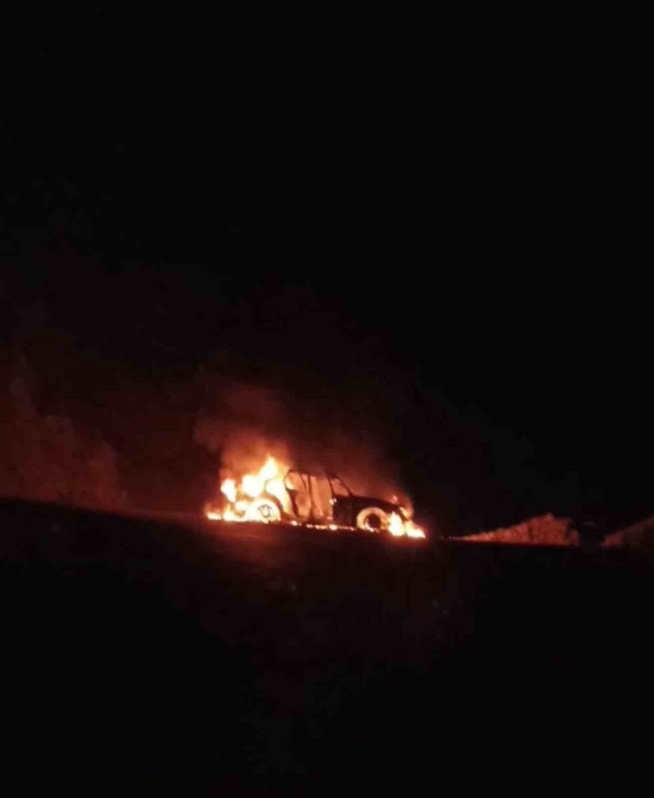 Seyir halindeki otomobil yanarak kullanılamaz hale geldi