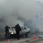 Seyir halindeki otomobil yandı, esnaf yardıma koştu