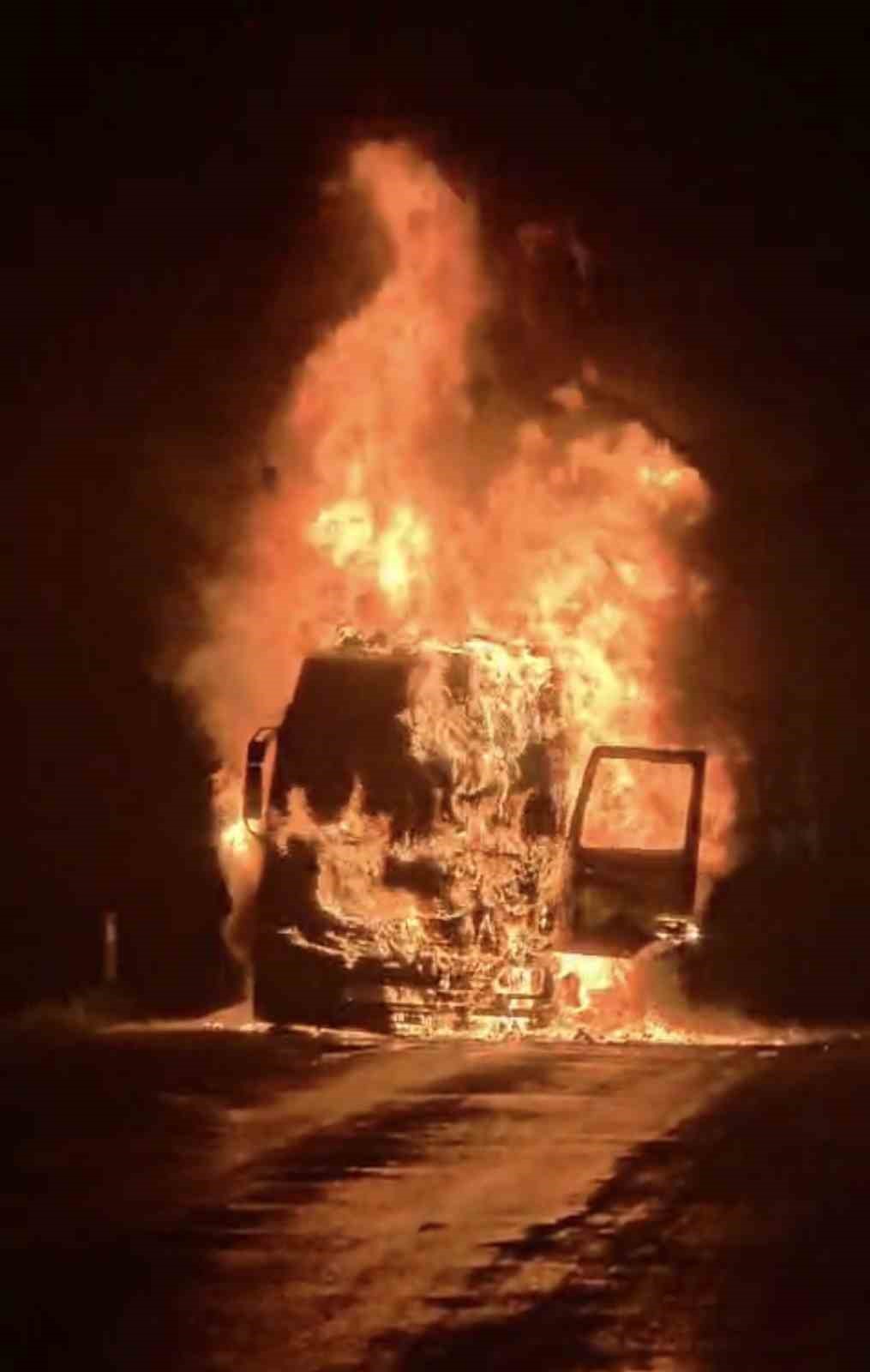 Durumu fark eden sürücü aracı yol kenarına çekerek kendini dışarıya atarken, olay itfaiye ekiplerine bildirildi. Bölgeye sevk edilen ekipler yangına müdahale etti.