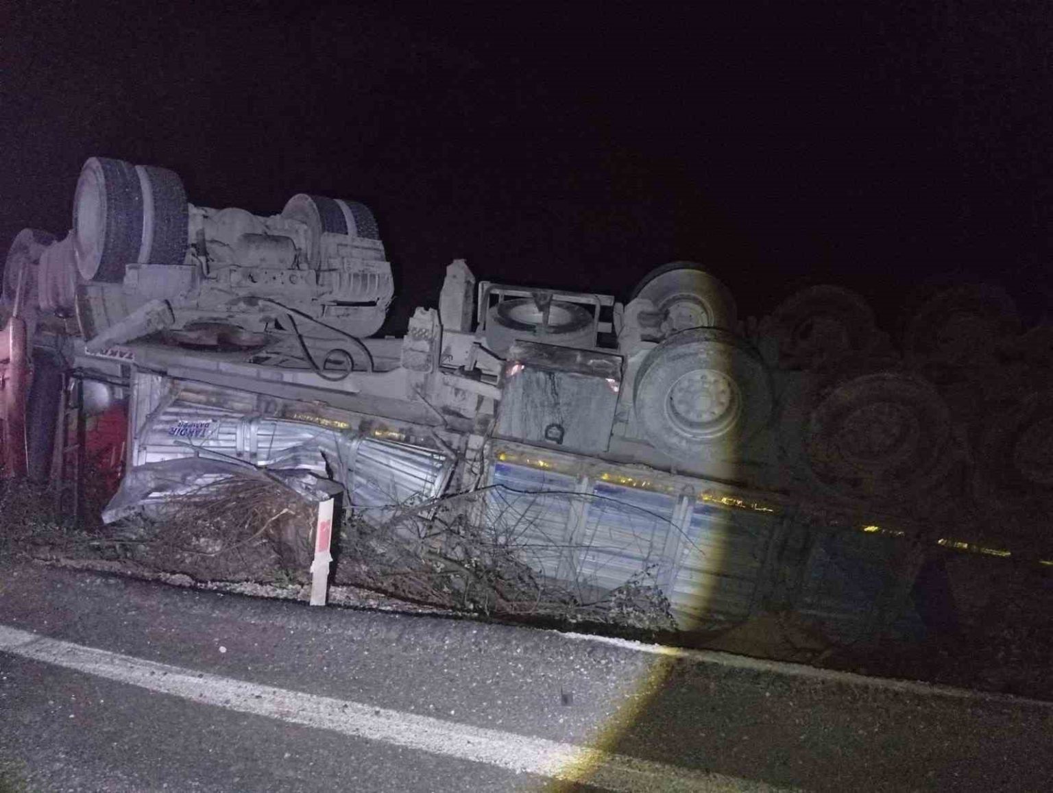 Seyir halindeki tır devrildi; 3 yaralı