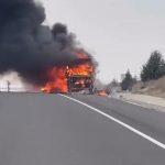 Eskişehir’de seyir halindeyken alevlere teslim olan yolcu otobüsü kullanılamaz hale gelirken, içerisindeki 25 yolcu son anda tahliye edildi.