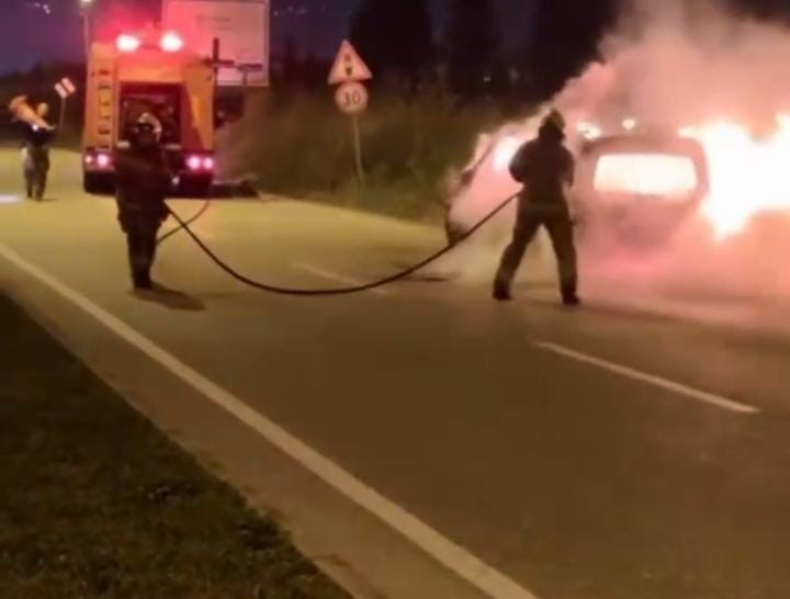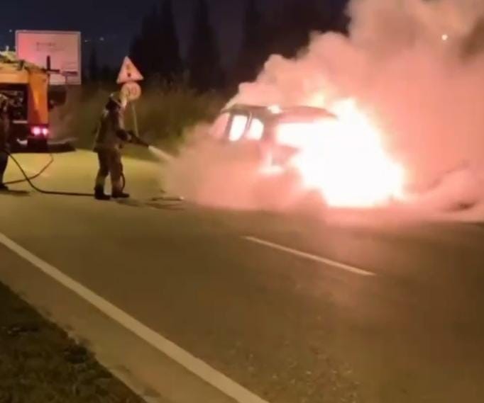 Seyir halindeyken alev alan otomobil kullanılmaz hale geldi