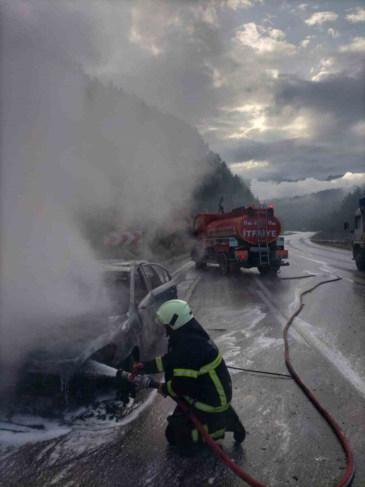 Yangın, Antalya-Isparta Karayolu Elsazı Köyü mevkiinde meydana geldi. Edinilen bilgilere göre, 07 ACU 706 plakalı araç seyir halindeyken henüz belirlenemeyen bir nedenle yanmaya başladı. Kısa sürede büyüyen yangın aracı sararken, sürücü durumu fark ederek aracı yol kenarına çekip güvenli şekilde uzaklaştı. İhbar üzerine adrese itfaiye ve jandarma ekipleri sevk edildi. İtfaiye ekipleri tarafından yangın söndürülürken araç tamamen yanarak kullanılmaz hale geldi.