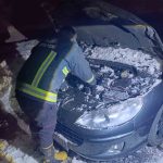 Van’ın Erciş ilçesinde seyir halindeki otomobilin yanan motoruna karla müdahale ettiler.