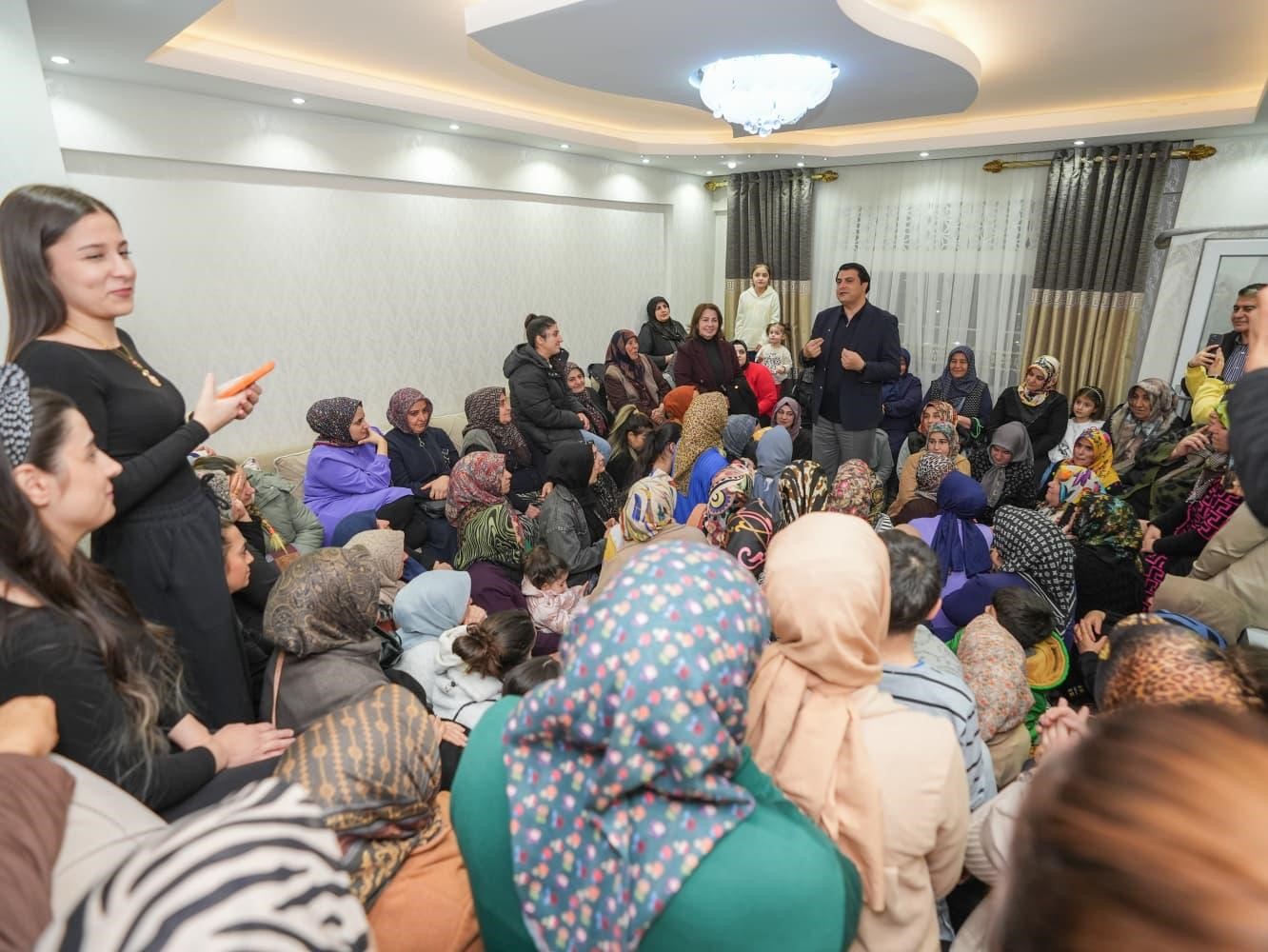 Mahallede yaşayan kadınlarla bir evde bir araya gelen Yılmaz, vatandaşların taleplerini birebir dinledi. Kadınların sosyal hayata katılımı, çocuklara yönelik projeler, mahallelerde yapılması planlanan hizmetler ve günlük yaşamı kolaylaştıracak çalışmalar hakkında karşılıklı fikir alışverişinde bulunuldu.