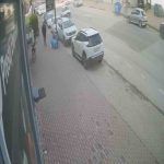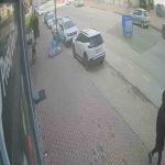 Aynı anlarda lodosun etkisiyle bir çöp kutusunun da sürüklendiği görüldü. Yaşanan tehlikeli anlar, çevredeki bir iş yerinin güvenlik kamerasına yansıdı.