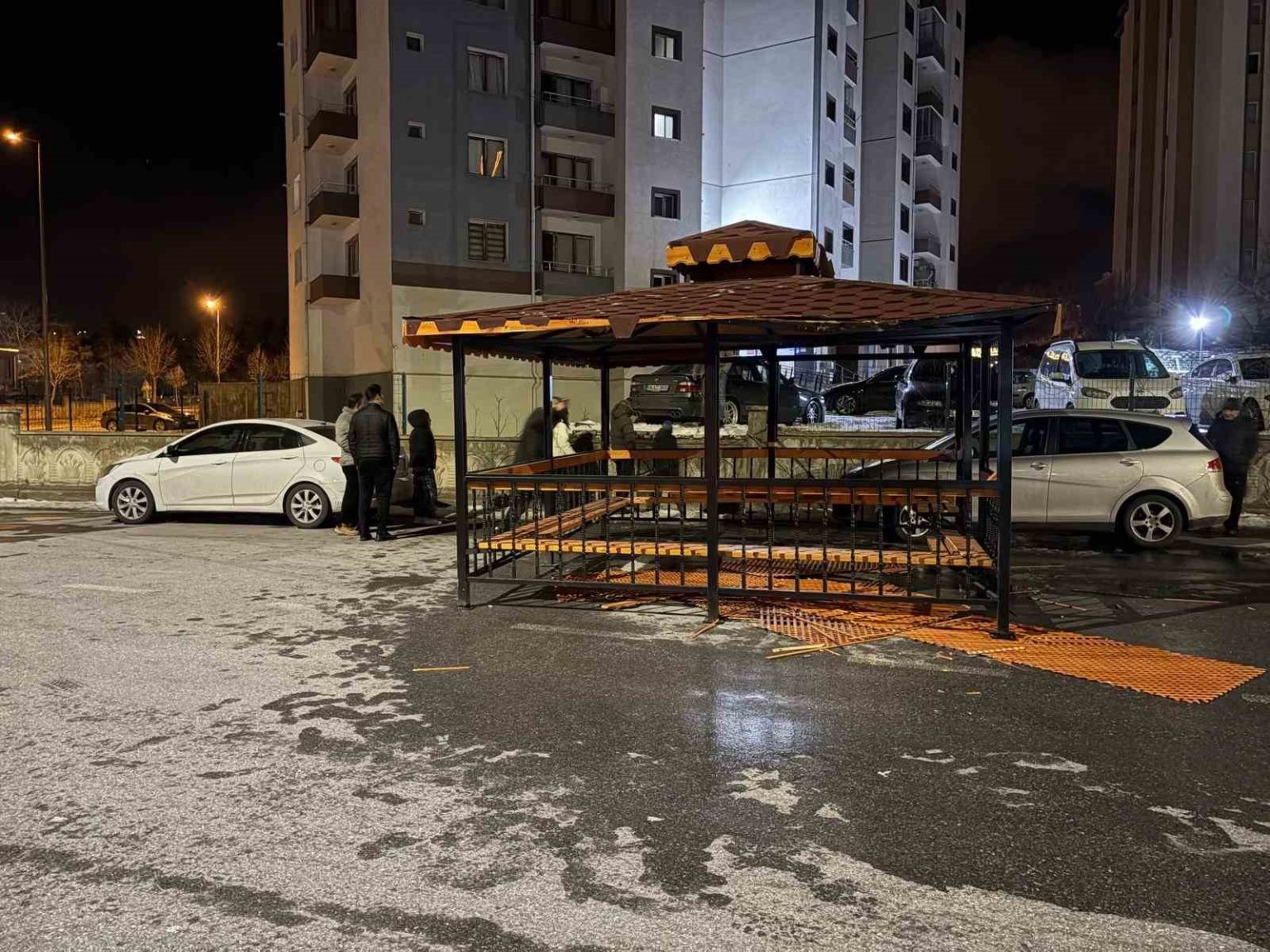Kayseri’de gece saatlerinde etkisini gösteren şiddetli rüzgar, kentte hayatı olumsuz etkiledi. Kent genelinde etkili olan rüzgar yerinden söktüğü bir kameriyeyi aynı şekilde yola kondururken, olayda iki otomobil zarar gördü.
