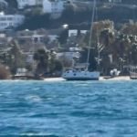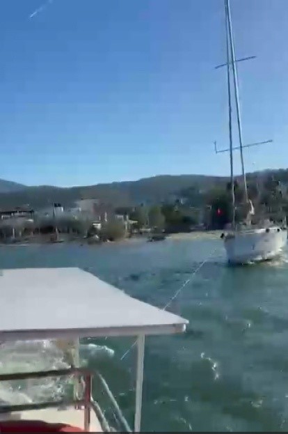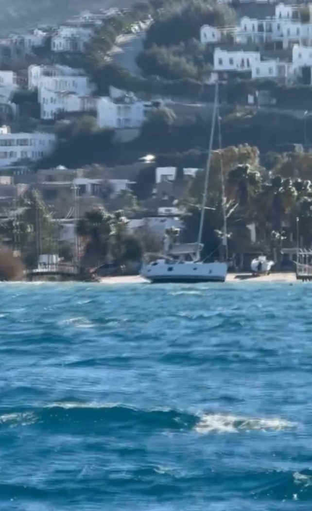 Muğla’nın Bodrum ilçesinde şiddetli rüzgar ve dalgalar denizde olumsuzluklara yol açarken, yelkenli tekne karaya oturdu.