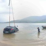 Siirt’te karşıya geçen feribottaki bir otomobil, el freni çekilmediği için hareket ederek Botan Barajı’na düştü.