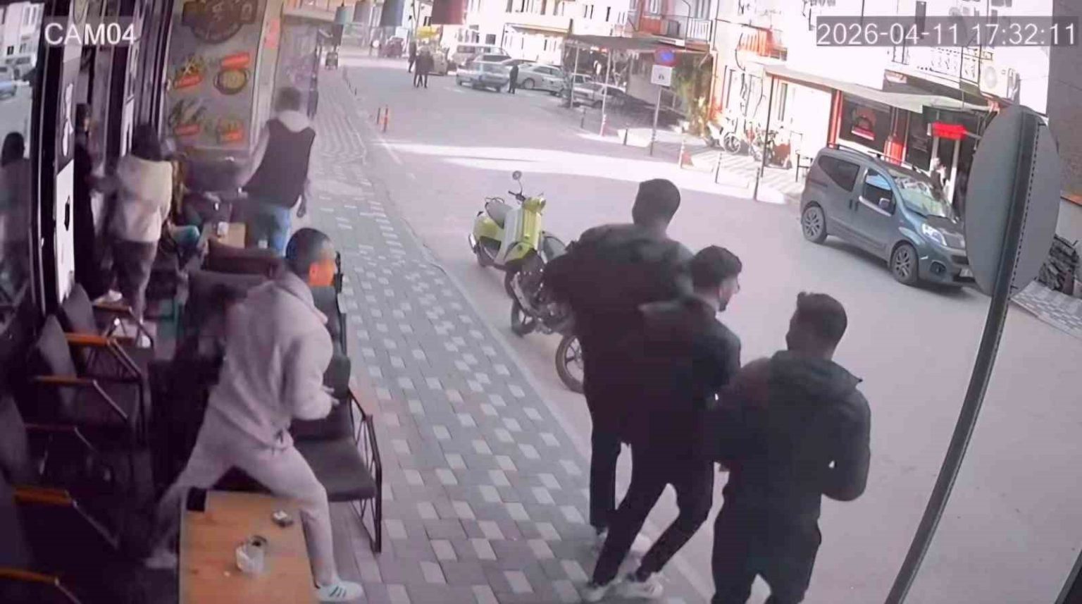 Hisarcık ilçesinde de hissedilen kısa süreli deprem anında Güner Önce Caddesindeki kafenin önünde oturan müşterilerin kaçışmaları güvenlik kameralarına saniye saniye yansıdı.