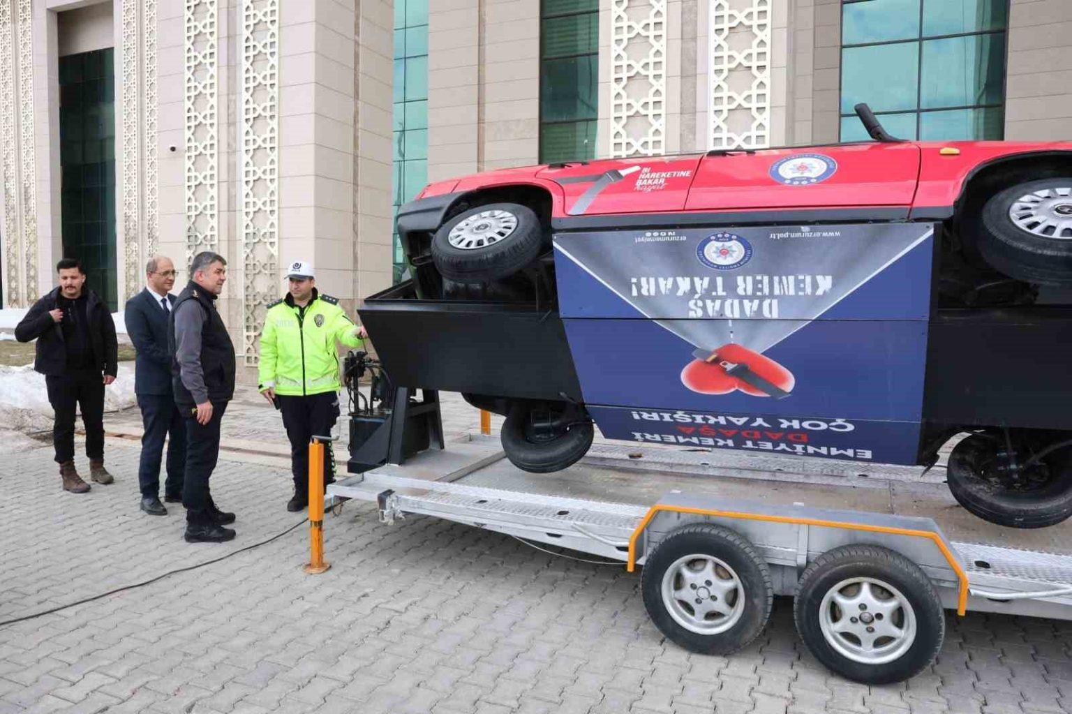 Erzurum İl Emniyet Müdürü Onur Karaburun, Trafik Denetleme Şube Müdürlüğü tarafından emniyet kemeri kullanımının hayati önemine dikkat çekmek amacıyla hazırlanan simülasyon aracını yerinde inceledi.