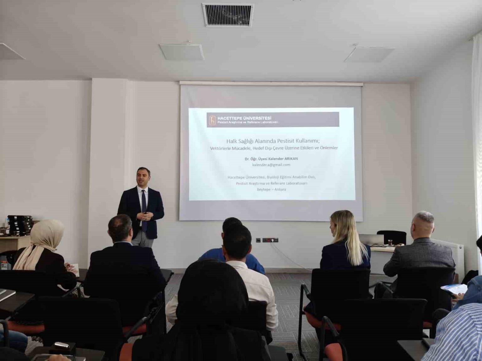 Hacettepe Üniversitesi Dr. Öğr. Üyesi Kalender Arıkan’ın sunum yaptığı programda; bilimsel ilaçlama yöntemleri, vektörle mücadele ve saha koordinasyonu konularında katılımcılara kapsamlı bilgiler aktarıldı.