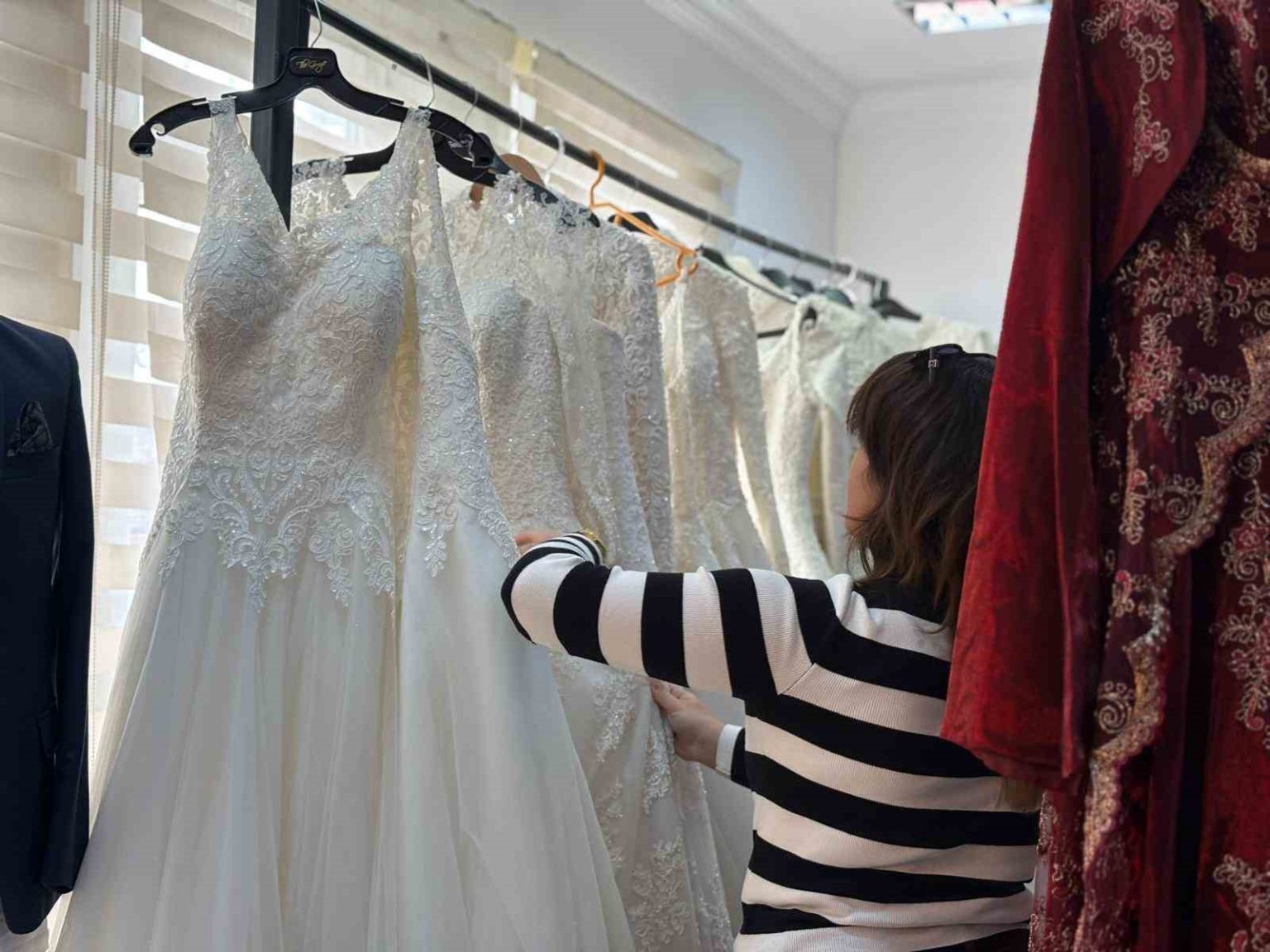 Sincan Belediyesi ihtiyacı olan evlenecek çiftlere Yarım Elma Hayır Çarşısı aracılığıyla gelinlik, bindallı, ayakkabı ve abiye elbise yardımı yaparak destek oluyor.