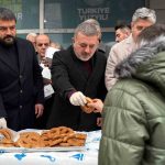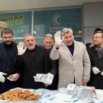Cami programı öncesi Başkan Ercan, Sincan AK Parti İlçe Başkanlığı’nın önünde Mustafa Özcan ile birlikte vatandaşlara kandil simidi ikramında bulundu.