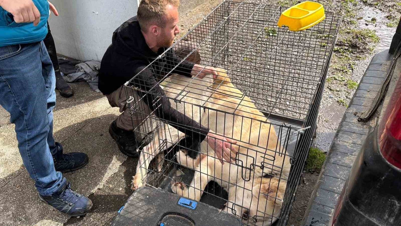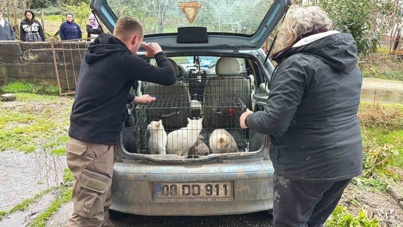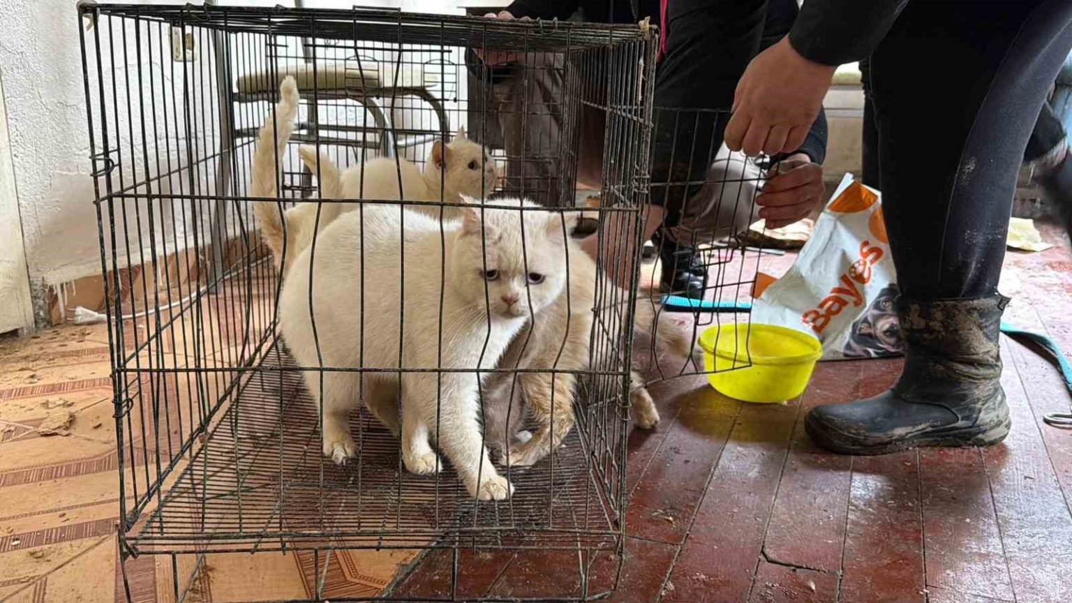 Veteriner hekim eşliğinde eve giren gönüllüler, hayvanların aç ve susuz kaldığını, bazı hayvanların ise kafes içinde tutulduğunu gördü. Ekipler, hayvanlara ilk müdahaleyi yaparak kedi ve köpekleri güvenli bir alana taşıdı.