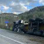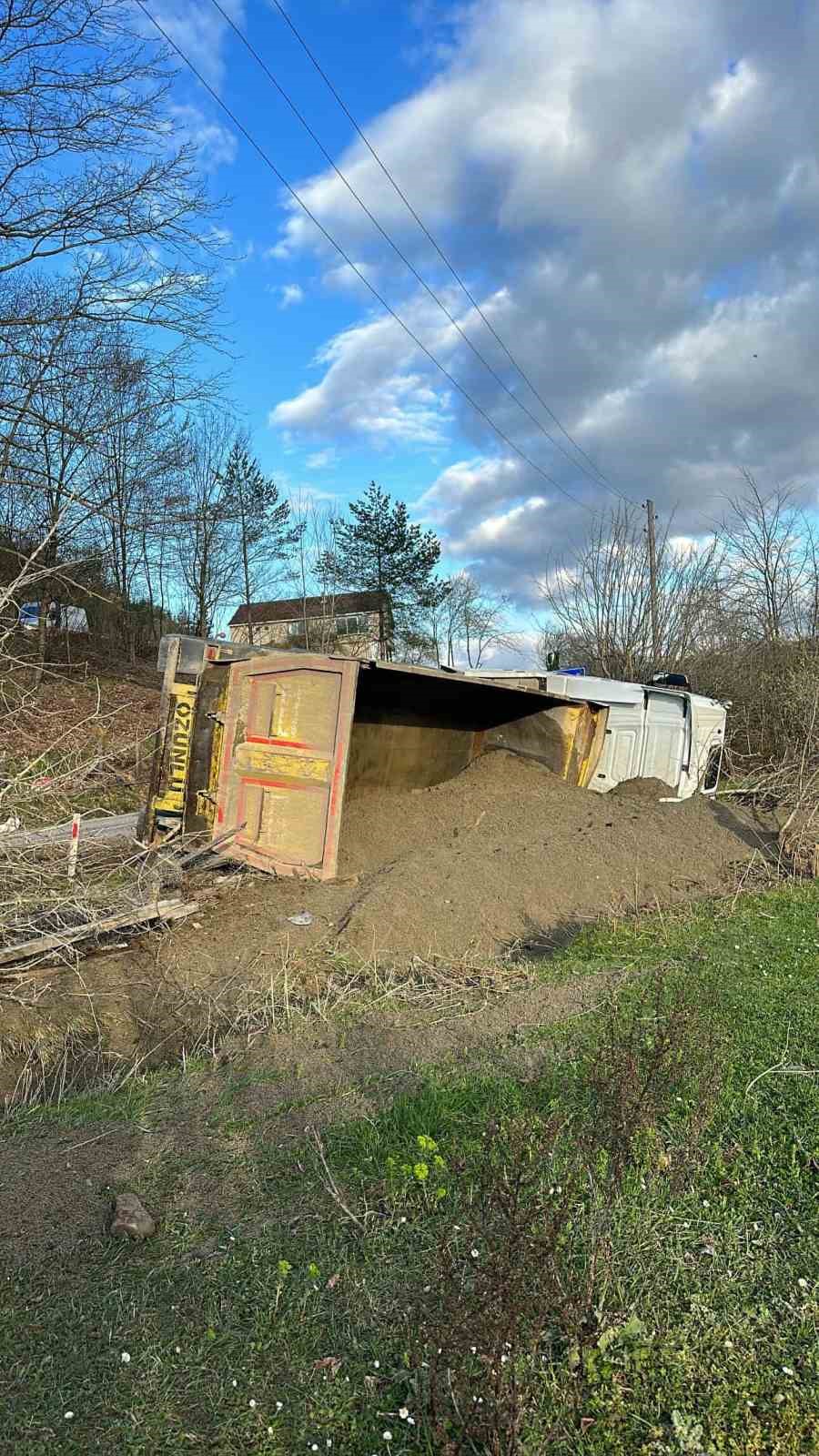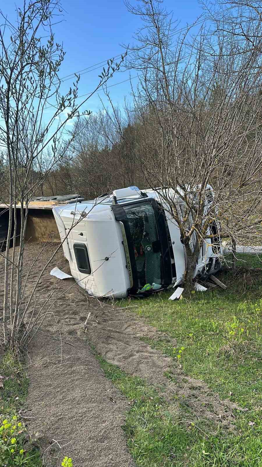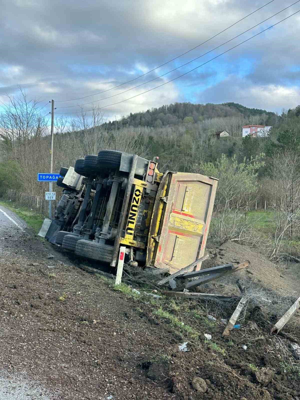 Sinop’un Ayancık ilçesinde kum yüklü kamyonun devrildiği kazada sürücü yaralandı.