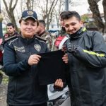 Öte yandan, soğuk hava koşullarında il genelinde görev yapan motosikletli kuryelerin soğuktan korunmalarına katkı sağlamak amacıyla katılımcılara boyunluk hediye edildi.