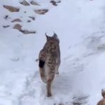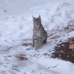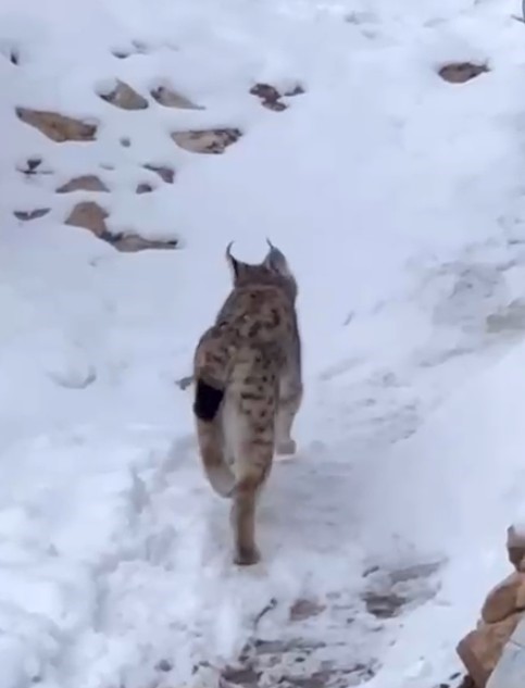 Gümüşhane’nin Şiran ilçesine bağlı Gökçeler köyünde nesli tehlike altında bulunan bir vaşak, yerleşim yerine kadar inerek cep telefonu kamerasına yansıdı.