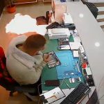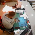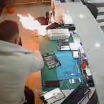 Bayburt’ta bir telefon tamircisinde cep telefonundan çıkarılan şişmiş batarya bir anda patlayarak alev aldı. O anlar iş yerinin güvenlik kamerasına yansıdı.