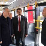 Konuşmaların ardından yeni otobüsün direksiyonuna geçen Başkan Uzun, şehir turu yaptı.