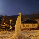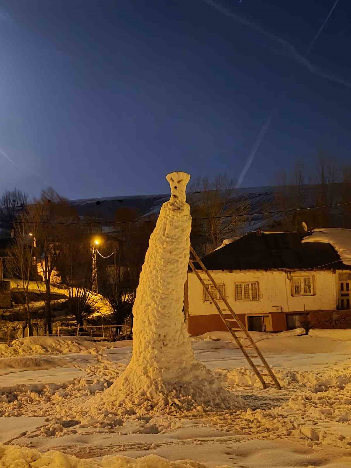 Sivas’ın Yıldızeli ilçesine bağlı Geynik köyünde, yoğun kar yağışının ardından çocuklar ve vatandaşlar bir günde yaklaşık 8 metrelik kardan adam yaptı, kardan adam daha çok kuleyi andırdı.