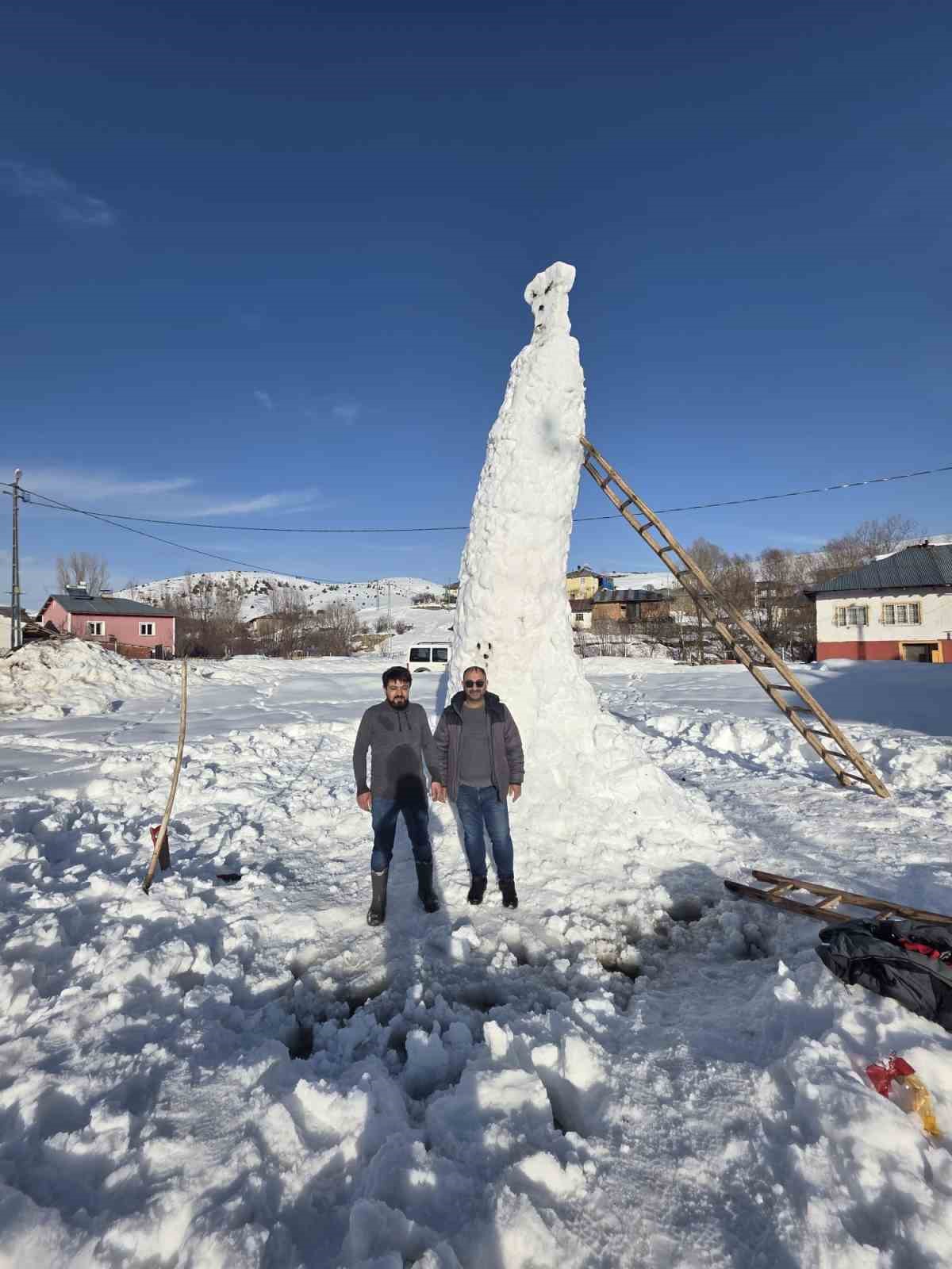Yakup Aydın, iskele kullanarak kardan adamı yaptıklarını belirtip, “Çocuklarla köye gittik, köyde çok fazla kar yağmıştı, öyle bir kardı ki yaklaşık 10 çatı çökmüştü ve kar 1 metrenin üzerindeydi. Çocuklarla kardan adam yapmak aklımıza geldi, kardan adama başladık, yükseldi ama merdivensiz olmadı, önce dört metrelik merdiven getirdik, o da yetmedi, daha sonra yedi metrelik merdiven aldık. Kar çıkarmak çok zor oldu, iplerle kovalarla tepesine kar taşıdık ve kardan adamı yükselttik. Hedefimiz 14 metreydi ama zaman yetmedi. Herkes fotoğraf çekildi, büyük bir ilgi odağı oldu, bu da bizi çok mutlu etti” dedi.