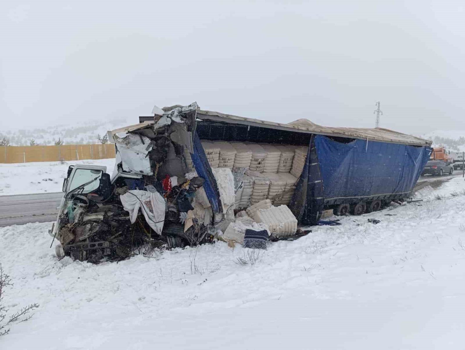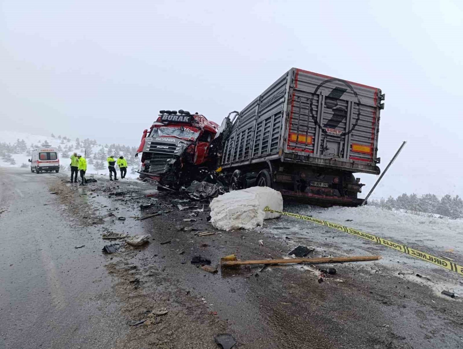 Edinilen bilgilere göre, kaza, Sivas’ın Yıldızeli ilçesi Çamlıbel Geçidi’nde meydana geldi. Sivas istikametine seyir halinde olan 01 ZB 477 yabancı plakalı pamuk yüklü tır ile 06 BBD 21 plakalı tır kafa kafaya çarpıştı. Kazayı gören vatandaşların ihbarı üzerine olay yerine çok sayıda sağlık, AFAD ve polis ekibi sevk edildi. Yabancı uyruklu tır sürücüsünün hayatını kaybettiği tespit edilirken diğer tırda bulunan 2 yaralı ambulanslarla hastanelere sevk edildi.