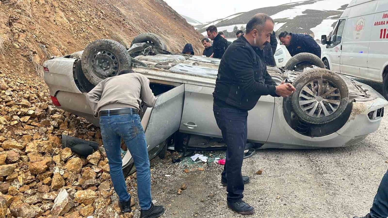 Sivas’ta otomobil takla attı, 3 kişi yaralandı