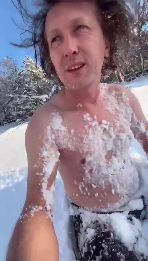Soğuğa aldırmadan yarı çıplak şekilde kar banyosu yaptı