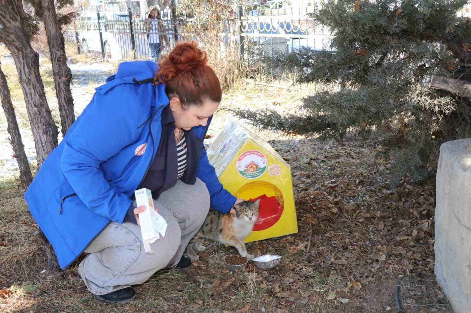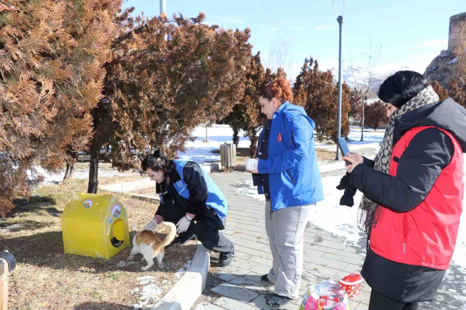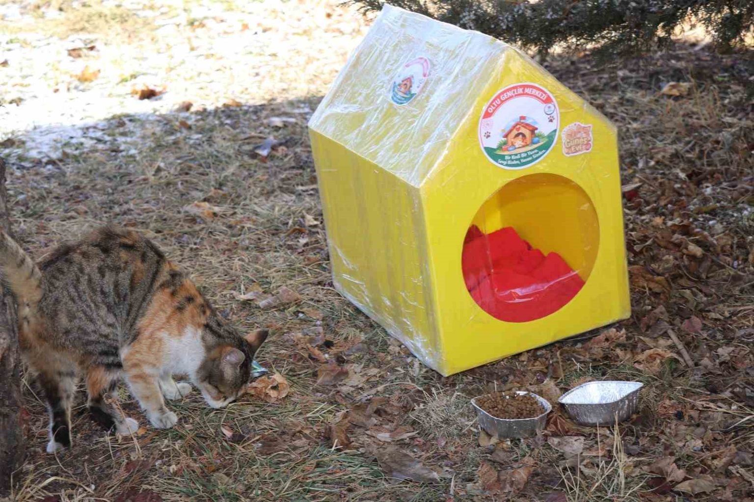 Gönüllüler tarafından hazırlanan kedi evlerinin içerisine, kullanılmayan giysilerden yataklar yerleştirildi. Streç filmle kaplanarak su geçirmez hale getirilen evler, ilçenin muhtelif noktalarına bırakıldı. Ayrıca kedi evlerinin bulunduğu alanlara mama ve su bırakıldı.